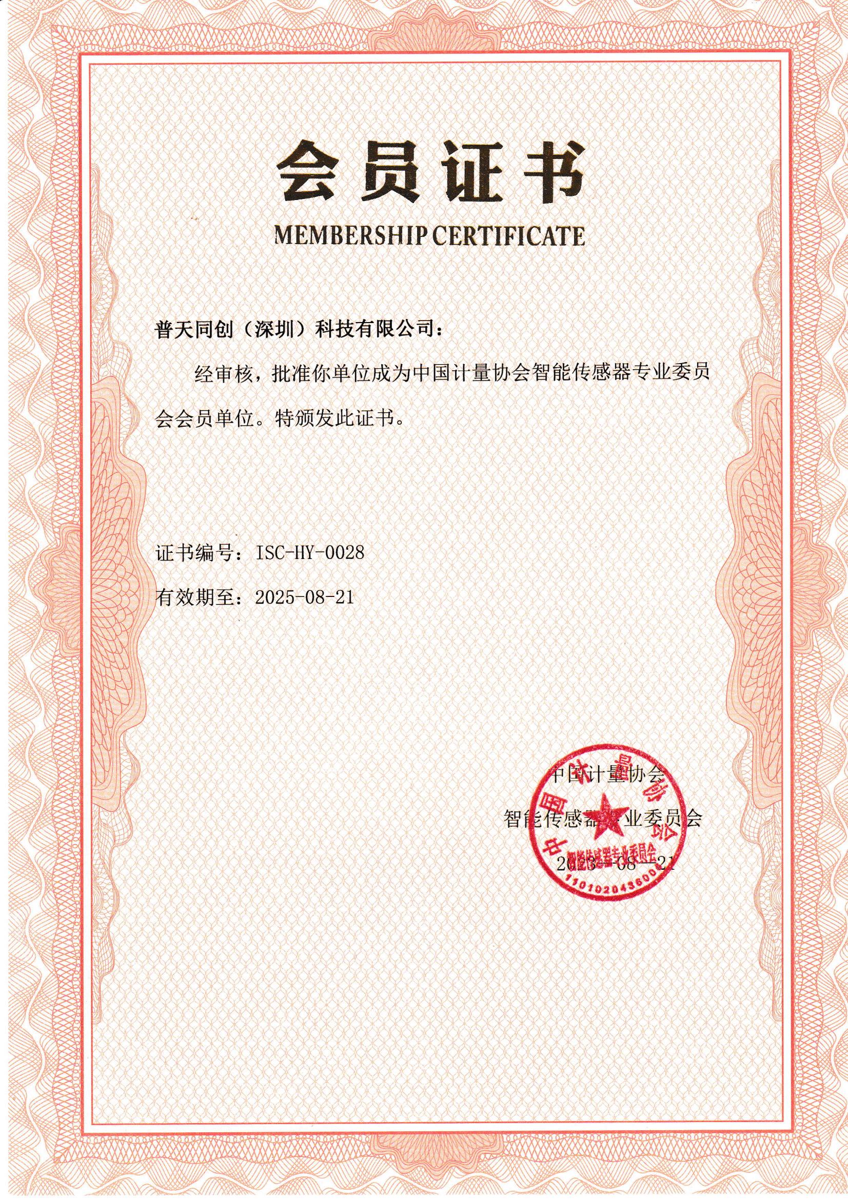 計量協(xié)會會員證書