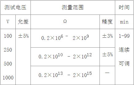 5.3 試驗時,對試樣所加的電壓為100-500V的直流電壓。