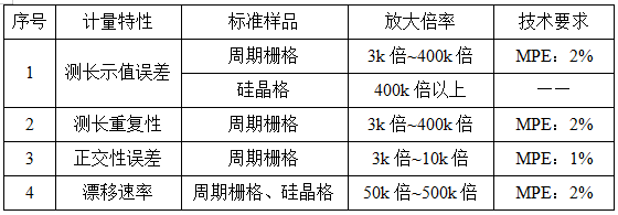 儀器在校準過程中需要考慮的環(huán)境條件包括溫度:(20±5)℃,濕度:≤70%RH,其中,實驗室震動和電磁輻射應(yīng)不影響測量結(jié)果。而儀器的校準項目所采用的標準樣品是周期柵格、硅晶格等,可根據(jù)計量特性、儀器測量范圍和實際使用情況選用相適應(yīng)的標準樣品。