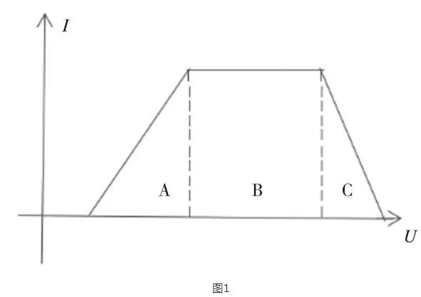 從大方向來考慮,交流充電樁與直流充電機(jī)的檢定有諸多相通之處,但充電樁在檢定和使用中都要注意恒功率區(qū)域問題。如圖1所示,A、C區(qū)域?yàn)榈碗娏髑闆r,充電效率低,容易炸機(jī);B區(qū)域?yàn)楹愎β蕝^(qū)域,適合檢定。